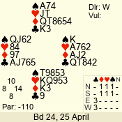 3 NT | S | +1 | 430 | 8 | 03 - 07 | 6 | 3 |