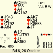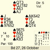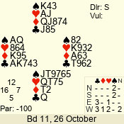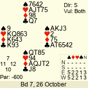 Con | Dc | Res | Score | Ld | Pairs | Rd | Tbl | 3 N | S | +1 | 630 | 2 | 07 - 01 | 7 | 7 |