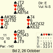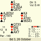 Con | Dc | Res | Score | Ld | Pairs | Rd | Tbl | 3  | E | = | -140 | 6 | 06 - 01 | 6 | 6 |