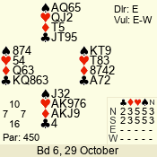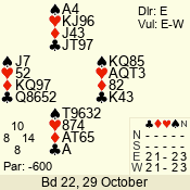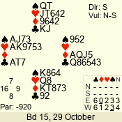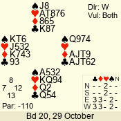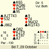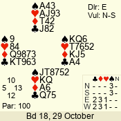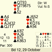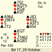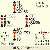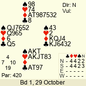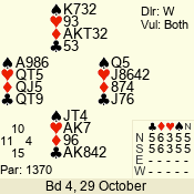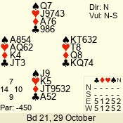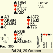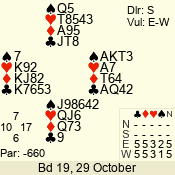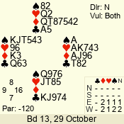 | 3 NT | S | +1 | 430 | 7 | 13 - 02 | 4 | 5 |