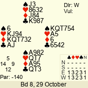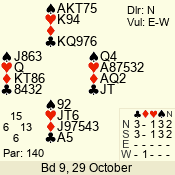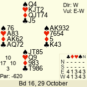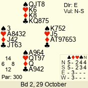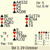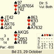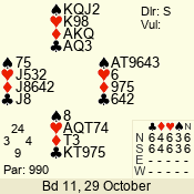 | 3 NT | S | +1 | 630 | 3 | 13 - 08 | 6 | 5 |