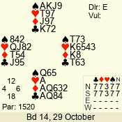 | 3 NT | E | +1 | -630 | 6 | 12 - 02 | 3 | 4 |