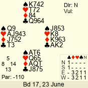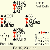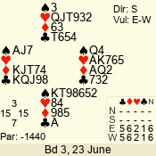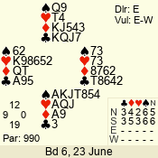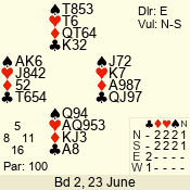 3 NT | E | +1 | -630 | J | 06 - 05 | 2 | 6 |