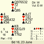 3 NT | W | +1 | -630 | 6 | 02 - 04 | 6 | 2 |