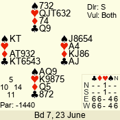 Con | Dc | Res | Score | Ld | Pairs | Rd | Tbl | 2  | S | +1 | 140 | 7 | 02 - 06 | 4 | 2 |