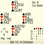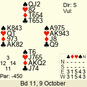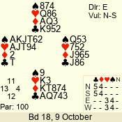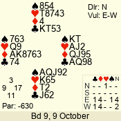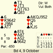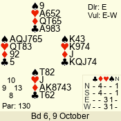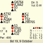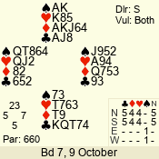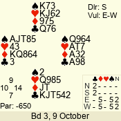 Con | Dc | Res | Score | Ld | Pairs | Rd | Tbl | 4  | S | +3 | 710 | 6 | 01 - 09 | 2 | 4 |