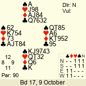 Con | Dc | Res | Score | Ld | Pairs | Rd | Tbl | 3 N | E | -4 | 400 | 9 | 09 - 08 | 1 | 4 |