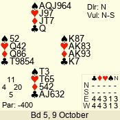 Con | Dc | Res | Score | Ld | Pairs | Rd | Tbl | 3 N | N | = | 400 | 9 | 04 - 03 | 5 | 4 |