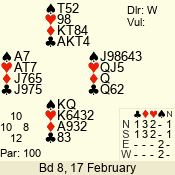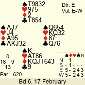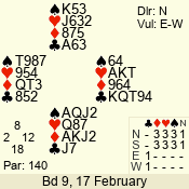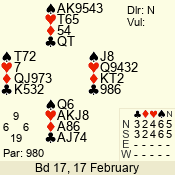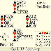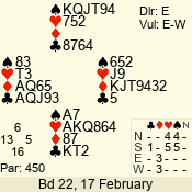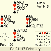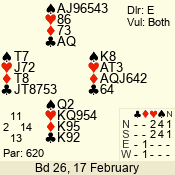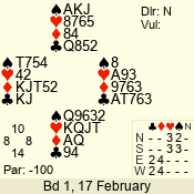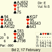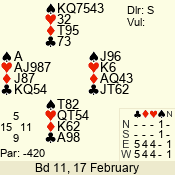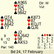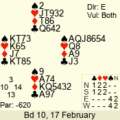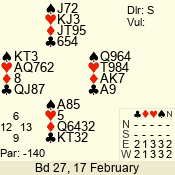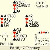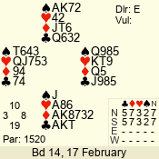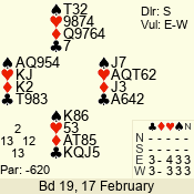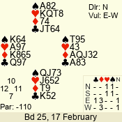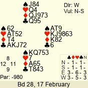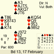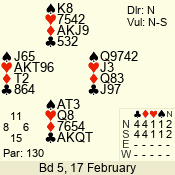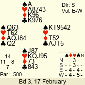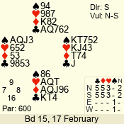 | 3 NT | W | +1 | -430 | 5 | 15 - 14 | 2 | 15 |