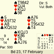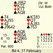 | 3 NT | W | +1 | -430 | 5 | 13 - 10 | 4 | 13 |