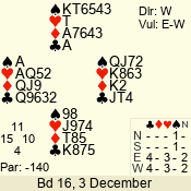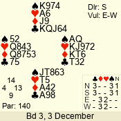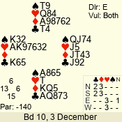 Con | Dc | Res | Score | Ld | Pairs | Rd | Tbl | 3  | W | = | -140 | K | 02 - 05 | 3 | 2 |