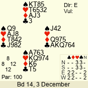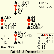 Con | Dc | Res | Score | Ld | Pairs | Rd | Tbl | 4  | E | -3 | 300 | A | 04 - 03 | 2 | 4 |