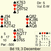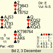 Con | Dc | Res | Score | Ld | Pairs | Rd | Tbl | 3 N | S | +4 | 520 | 6 | 01 - 04 | 3 | 1 |