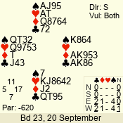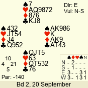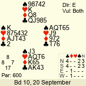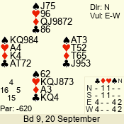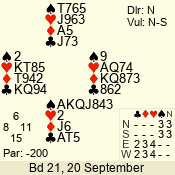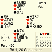 3 NT | E | +1 | -430 | 3 | 09 - 05 | 5 | 1 |