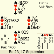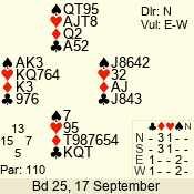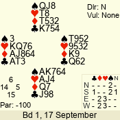 Con | Dc | Res | Score | Ld | Pairs | Rd | Tbl | 3 N | N | +1 | 430 | 3 | 05 - 10 | 10 | 5 |