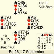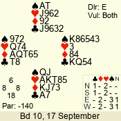 Con | Dc | Res | Score | Ld | Pairs | Rd | Tbl | 4  | E | -4 | 400 | T | 03 - 07 | 11 | 3 |