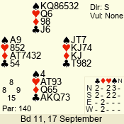 Con | Dc | Res | Score | Ld | Pairs | Rd | Tbl | 4 x | S | = | 590 | K | 13 - 11 | 3 | 13 |