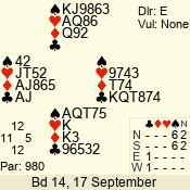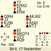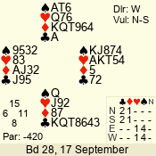 Con | Dc | Res | Score | Ld | Pairs | Rd | Tbl | 4  | W | = | -620 | K | 01 - 14 | 2 | 1 |