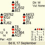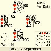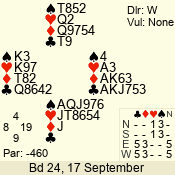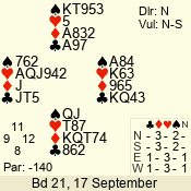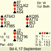 Con | Dc | Res | Score | Ld | Pairs | Rd | Tbl | 4  | N | +2 | 680 | A | 12 - 13 | 14 | 12 |