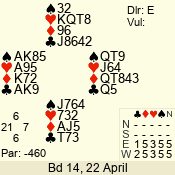 | 3 NT | E | +2 | -460 | 6 | 03 - 05 | 6 | 3 |