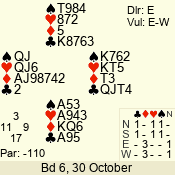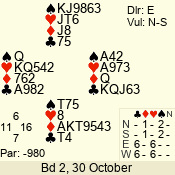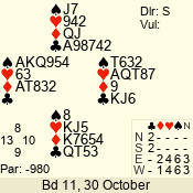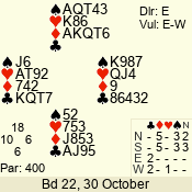 3 NT | W | +1 | -430 | 2 | 09 - 09 | 1 | 9 |