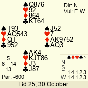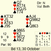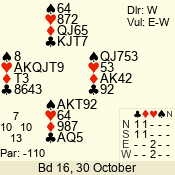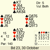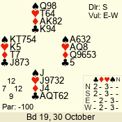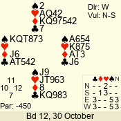 Con | Dc | Res | Score | Ld | Pairs | Rd | Tbl | 3 NT | W | -3 | 150 | J | 04 - 08 | 6 | 4 |