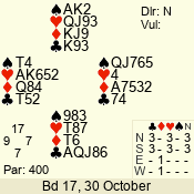 Con | Dc | Res | Score | Ld | Pairs | Rd | Tbl | 3 NT | N | = | 400 | T | 03 - 05 | 8 | 3 |