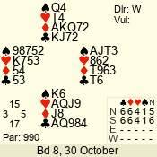 3 NT | W | +1 | -630 | 2 | 08 - 05 | 4 | 8 |