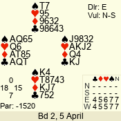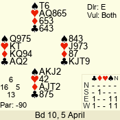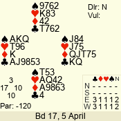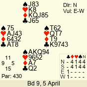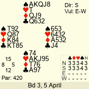 3 NT | E | +1 | -430 | 9 | 01 - 03 | 5 | 1 |