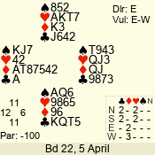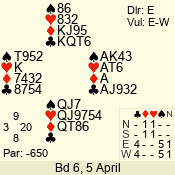 3 NT | W | +2 | -460 | 5 | 04 - 05 | 6 | 4 |