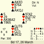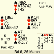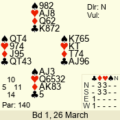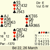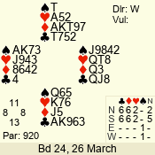 3 NT | S | +1 | 430 | 9 | 07 - 12 | 9 | 7 |