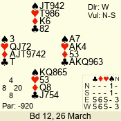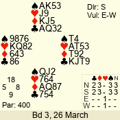3 NT | S | +1 | 630 | Q | 10 - 08 | 3 | 10 |