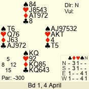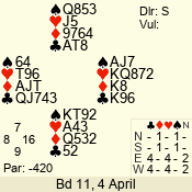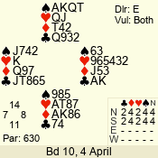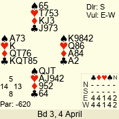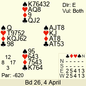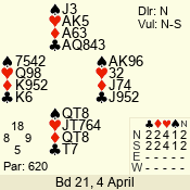Con | Dc | Res | Score | Ld | Pairs | Rd | Tbl | 4  | S | = | 620 | K | 01 - 04 | 11 | 1 |