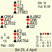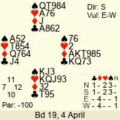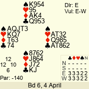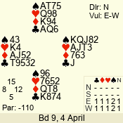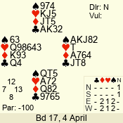 Con | Dc | Res | Score | Ld | Pairs | Rd | Tbl | 3 N | E | -2 | 200 | 4 | 12 - 09 | 4 | 12 |