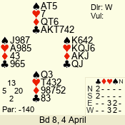 Con | Dc | Res | Score | Ld | Pairs | Rd | Tbl | 1  | N | +2 | 140 | J | 05 - 08 | 11 | 5 |
