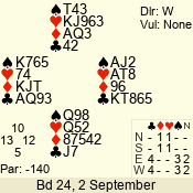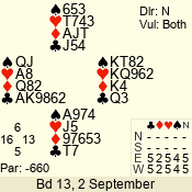 Con | Dc | Res | Score | Ld | Pairs | Rd | Tbl | 3 N | N | +2 | 660 | J | 19 - 11 | 9 | 19 |