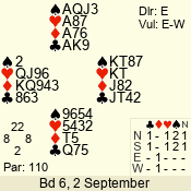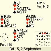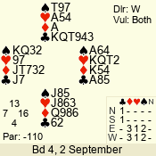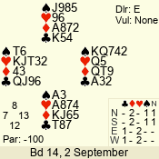 Con | Dc | Res | Score | Ld | Pairs | Rd | Tbl | 3 N | E | -4 | 400 | T | 05 - 15 | 25 | 5 |