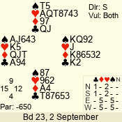 Con | Dc | Res | Score | Ld | Pairs | Rd | Tbl | 3 N | S | +2 | 460 | 7 | 03 - 15 | 23 | 3 |