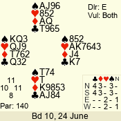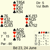 Con | Dc | Res | Score | Ld | Pairs | Rd | Tbl | 6 NT | W | -3 | 300 | 6 | 01 - 09 | 2 | 1 |