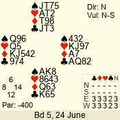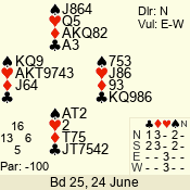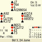 3 NT | W | +2 | -660 | 6 | 02 - 02 | 1 | 2 |