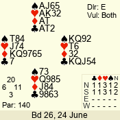 Con | Dc | Res | Score | Ld | Pairs | Rd | Tbl | 1 NT | E | -1 | 200 | 6 | 04 - 09 | 5 | 4 |
