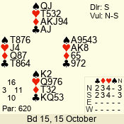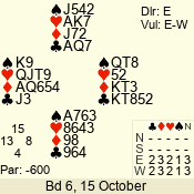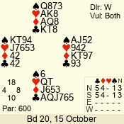 Con | Dc | Res | Score | Ld | Pairs | Rd | Tbl | 3 N | W | = | -600 | 5 | 14 - 03 | 12 | 14 |