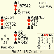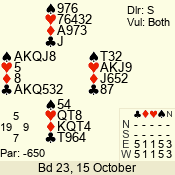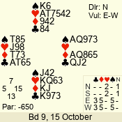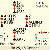 Con | Dc | Res | Score | Ld | Pairs | Rd | Tbl | 5 x | E | -3 | 500 | Q | 18 - 10 | 9 | 18 |