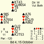 Con | Dc | Res | Score | Ld | Pairs | Rd | Tbl | 4  | W | -2 | 200 | Q | 05 - 15 | 25 | 5 |
