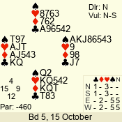 Con | Dc | Res | Score | Ld | Pairs | Rd | Tbl | 3 N | S | +2 | 460 | 4 | 10 - 11 | 19 | 10 |
