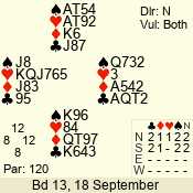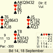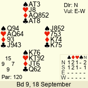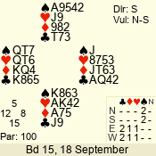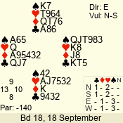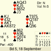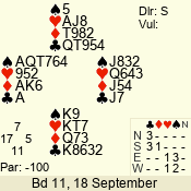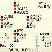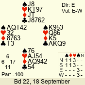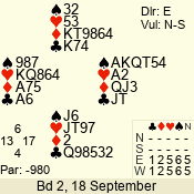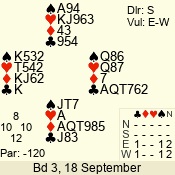3 NT | E | +1 | -430 | 9 | 02 - 10 | 3 | 2 |