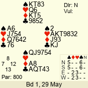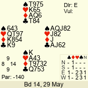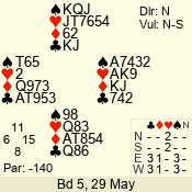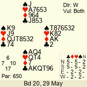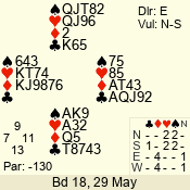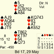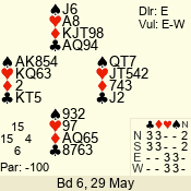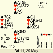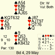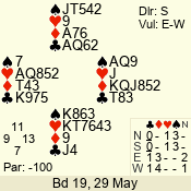 Con | Dc | Res | Score | Ld | Pairs | Rd | Tbl | 3 NT | E | -4 | 200 | 3 | 06 - 07 | 7 | 6 |