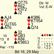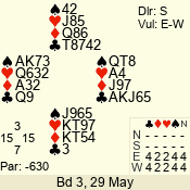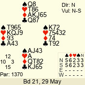 Con | Dc | Res | Score | Ld | Pairs | Rd | Tbl | 3 NT | N | +3 | 690 | 2 | 02 - 04 | 6 | 2 |