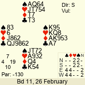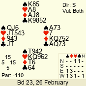 3 NT | S | +1 | 430 | 2 | 10 - 06 | 5 | 10 |