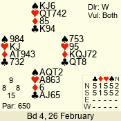 Con | Dc | Res | Score | Ld | Pairs | Rd | Tbl | 5 NT | W | -3 | 150 | 4 | 04 - 06 | 9 | 4 |